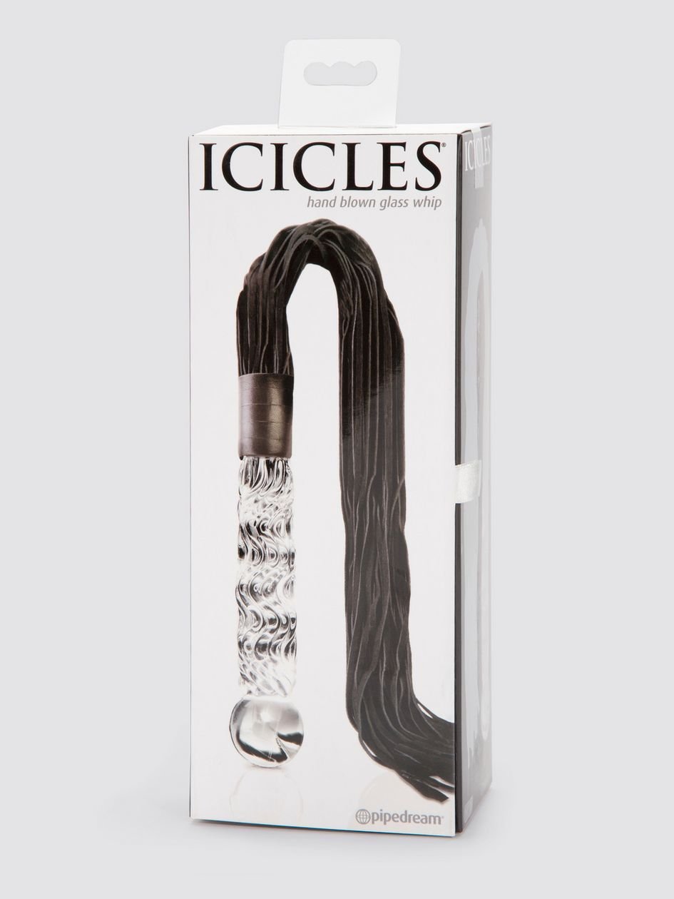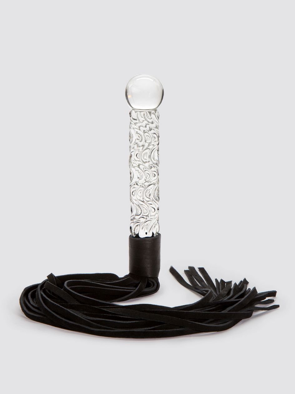 An attractive and desirable whip made from hand-blown glass and suede leather.